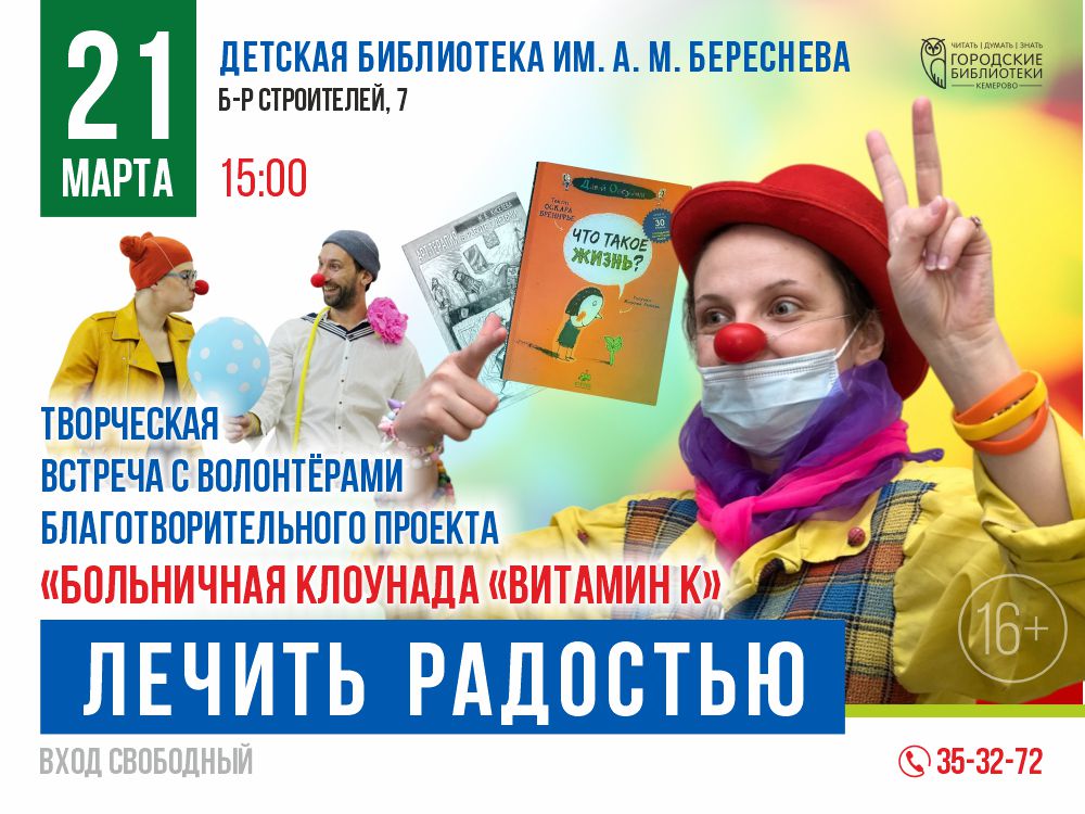 | 11.03 |  | В Детской библиотеке им. А. М. Береснева пройдет творческая встреча c волонтерами благотворительного проекта «Больничная клоунада» |