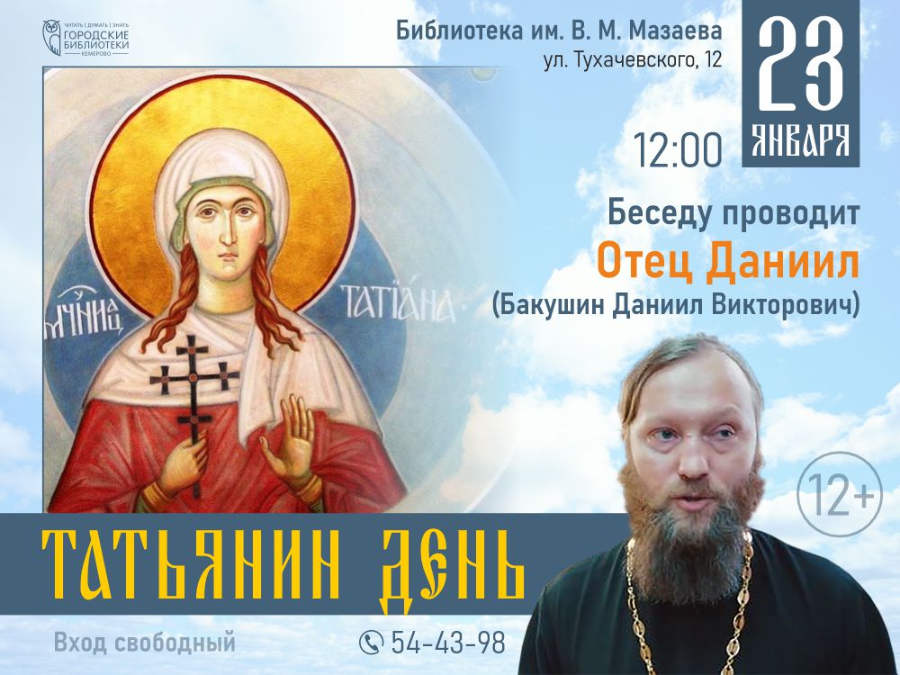 | 23.01 |  | Татьянин день: в Библиотеке им. В. М. Мазаева прошла беседа со священнослужителем |