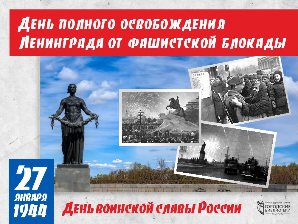 | 20.01 |  | В городских библиотеках пройдёт цикл мероприятий ко Дню полного освобождения Ленинграда от фашистской блокады |