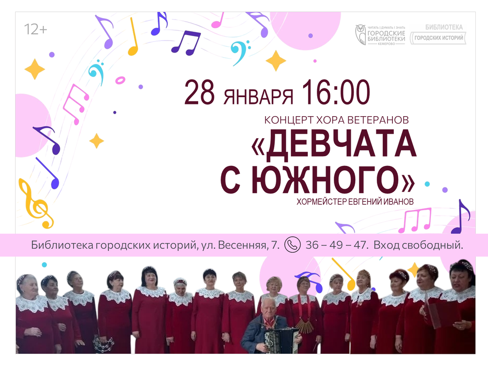 | 16.01 |  | Концерт хора ветеранов «Девчата с Южного» в Библиотеке городских историй |