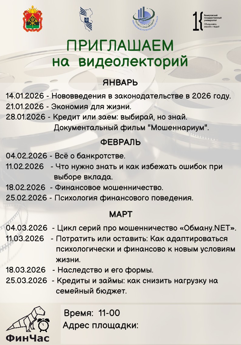 | 14.01 |  | Видеолекторий «Нововведение в законодательстве в 2026 году» в рамках просветительского проекта «ФинЧАС» |