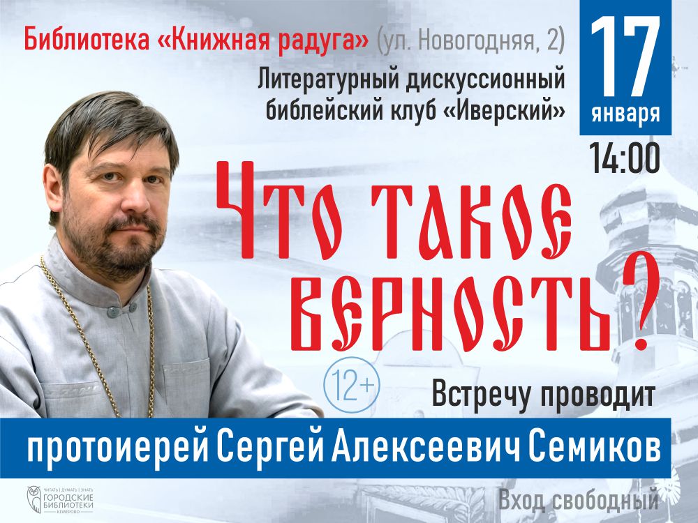 | 17.01 |  | Первое заседание литературного библейского дискуссионного клуба «Иверский» состоялось в библиотеке «Книжная радуга» |