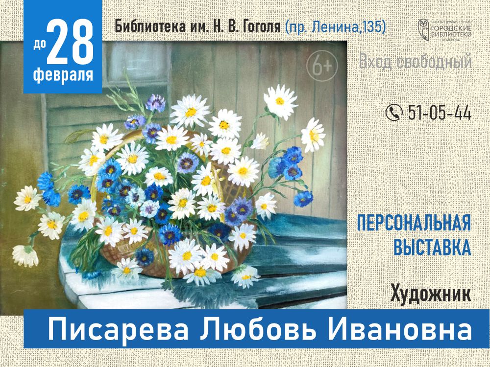 | 03.02 |  | Выставка картин Любови Писаревой открылась в Библиотеке им. Н.В. Гоголя |