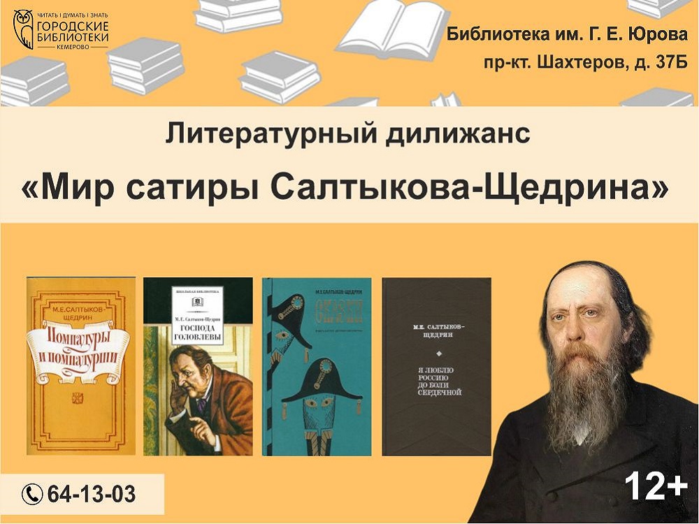 | 03.02 |  | Литературный дилижанс «Мир сатиры Салтыкова-Щедрина» в Библиотеке им. Г. Е. Юрова |