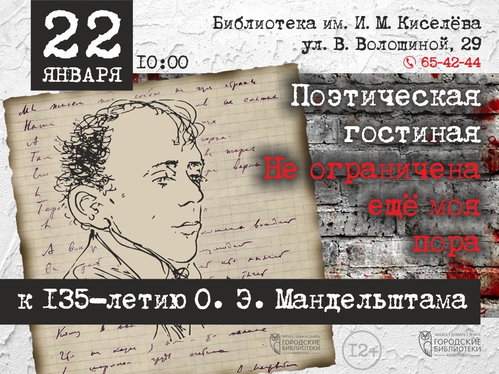 | 22.01 |  | Поэтическая гостиная «Не ограничена еще моя пора» в Библиотеке им. И. М. Киселева |