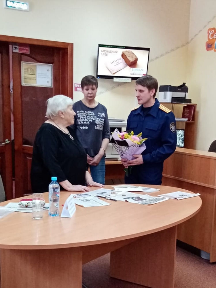 Представители Следственного комитета РФ взяли небольшое интервью у Маргариты Павловны, пожелали ей долгих лет жизни, крепкого здоровья и в знак уважения и почтения вручили цветы и памятный подарок.