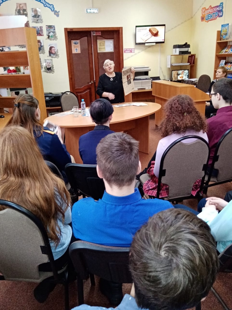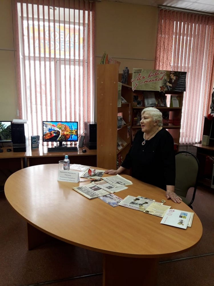 Читателям библиотеки – старшеклассникам средней школы №69 – Маргарита Павловна рассказала о тех страшных днях, которые выпали на долю ленинградцев. Ребята услышали много трагических фактов о том трудном периоде в истории Великой Отечественной войны, ведь всё то, что пережили ленинградцы, пережила и её семья.