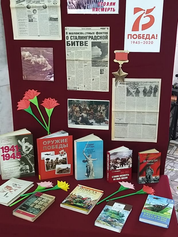 Специалисты библиотеки в рамках мероприятия организовали выставку-экспозицию «Стояли насмерть», на которой была представлена разнообразная документальная литература: «Великая Отечественная война 1941–1945 годов», издания из серии «Великие полководцы» Второй мировой, «Жизнь Замечательных Людей», а также художественная литература известных писателей: К. Симонов «Живые и мертвые», В. Некрасов «В окопах Сталинграда», Ю. Бондарев «Горячий снег», В. Гроссман «Жизнь и судьба» и другие.