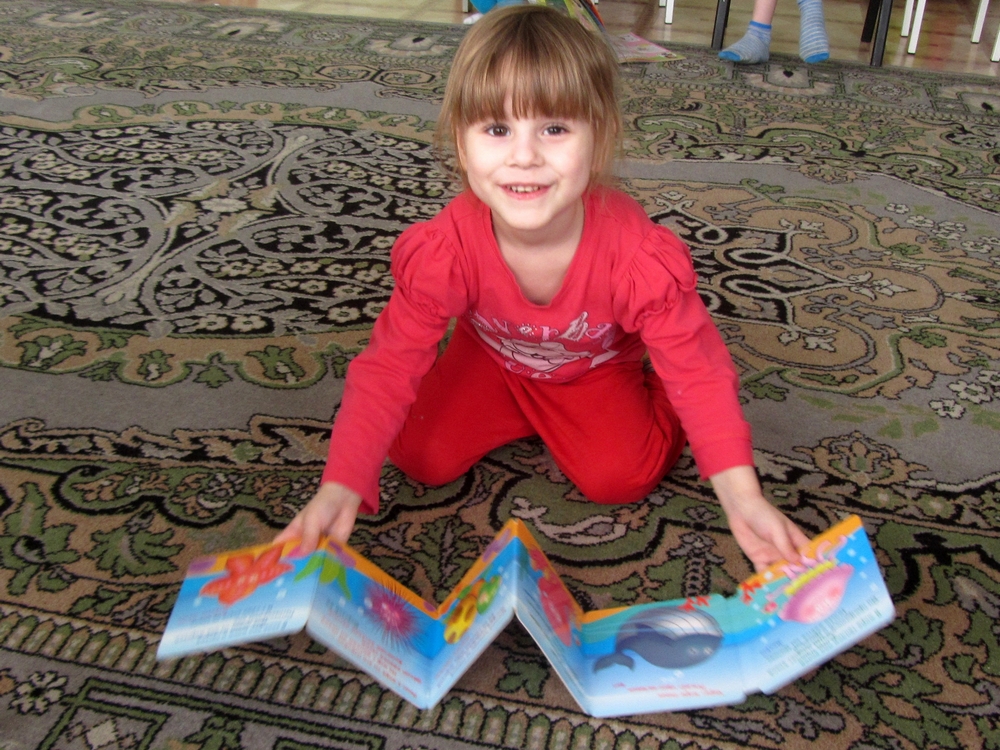 Разгадывая книжные «Морские загадки», дети узнали о разных морских обитателях, а книга «Курочка ряба» с ярко-синим шнурком смогла помочь тем, кто учится завязывать шнурки. Особенно дошколятам понравилась яркая и веселая «Книжка про меня», где на каждой страничке есть три окошка, под которыми прятались ответы на вопросы обо всем, что окружает детей каждый день.