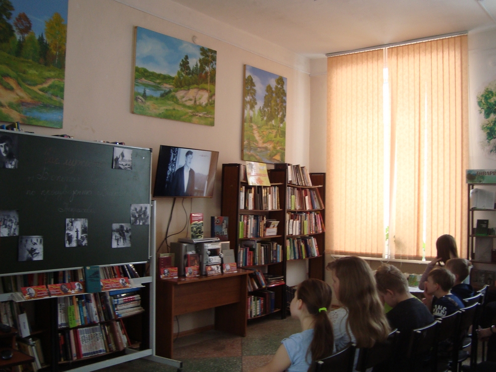 В завершение мероприятия читателям библиотеки было предложено посмотреть отрывки из документального фильма с участием писателя и художественного фильма «Солдаты», снятого по повести Виктора Некрасова «В окопах Сталинграда».