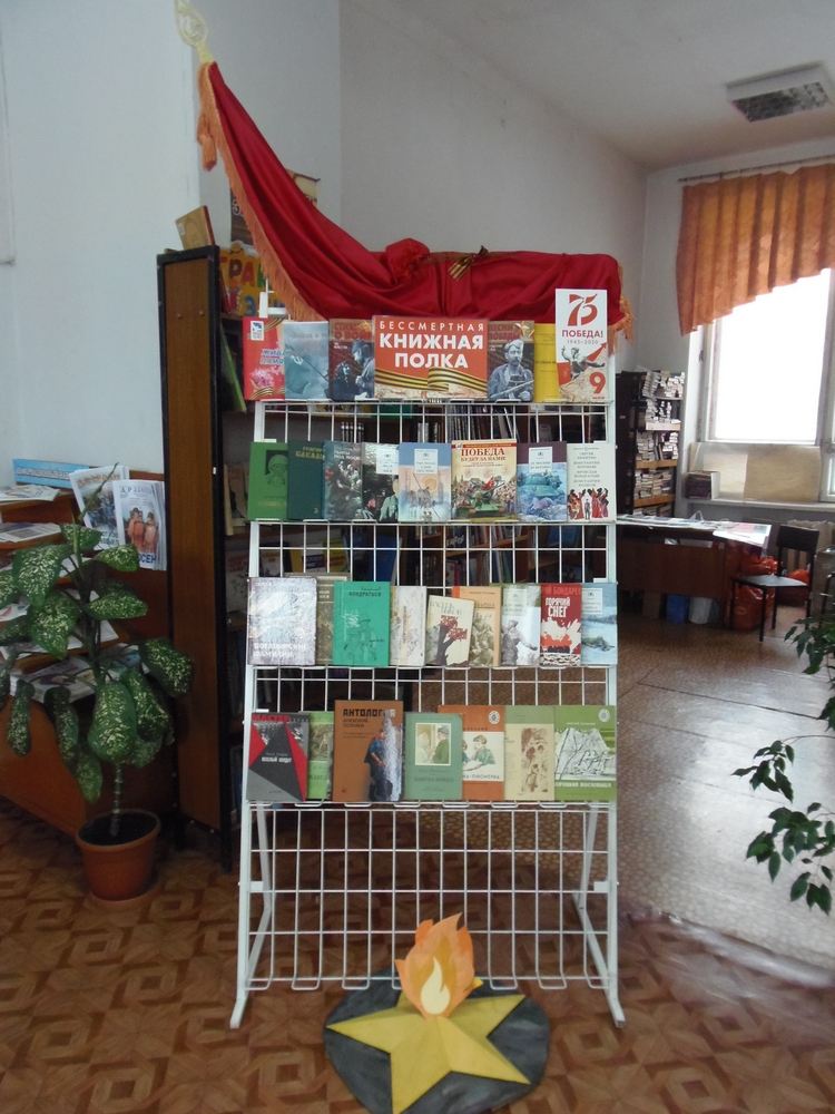 Война оставила глубокий след в литературе – написано много книг о стойкости, отваге и мужестве советских солдат. Ребята познакомились с лучшими произведениями о войне, представленными на выставке «Бессмертная книжная полка». Из книг, представленных в разделе «Память огненных лет», юные читатели узнали о подвиге военных моряков, летчиков, саперов, самоотверженно защищавших нашу Родину, а книжная полка «Возьми себе в пример героя» рассказала о том, как их сверстники не только боролись с трудностями военного времени в тылу, но и вступали в борьбу с врагом наравне со взрослыми на фронте.