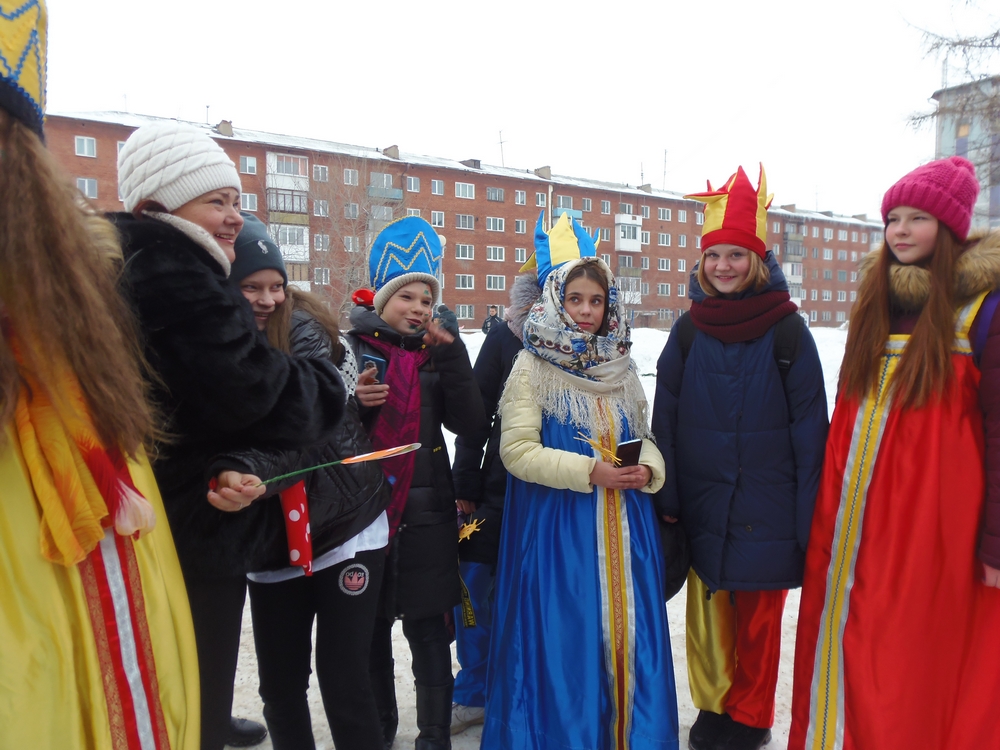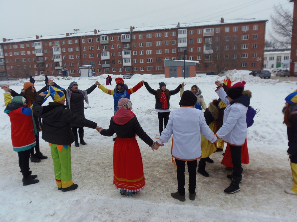 Начался праздник с разгуляя от МАОУ «Общеобразовательной школы-интерната №30», воспитанники которого смастерили солнышки из фетра с пожеланиями весны и счастья и раздавали их прохожим. Основные игры и забавы начались с приходом в сквер на улице Леонова. В ярких костюмах, с колядным колесом с лентами, участники разгуляя вовлекали в старинные игры детей и взрослых. Вспомнили игру в ручеек и гонки «зима против весны», водили хоровод и читали весенние заклички. А нагулявшись вволю, отправились в библиотеку «Гармония» на чаепитие. Там гости узнали о маслиничных традициях, народных приметах на Масленицу, исполнили веселые частушки, а самые артистичные смогли принять участие в театральном экспромте «Сказке про Емелю на новый лад».