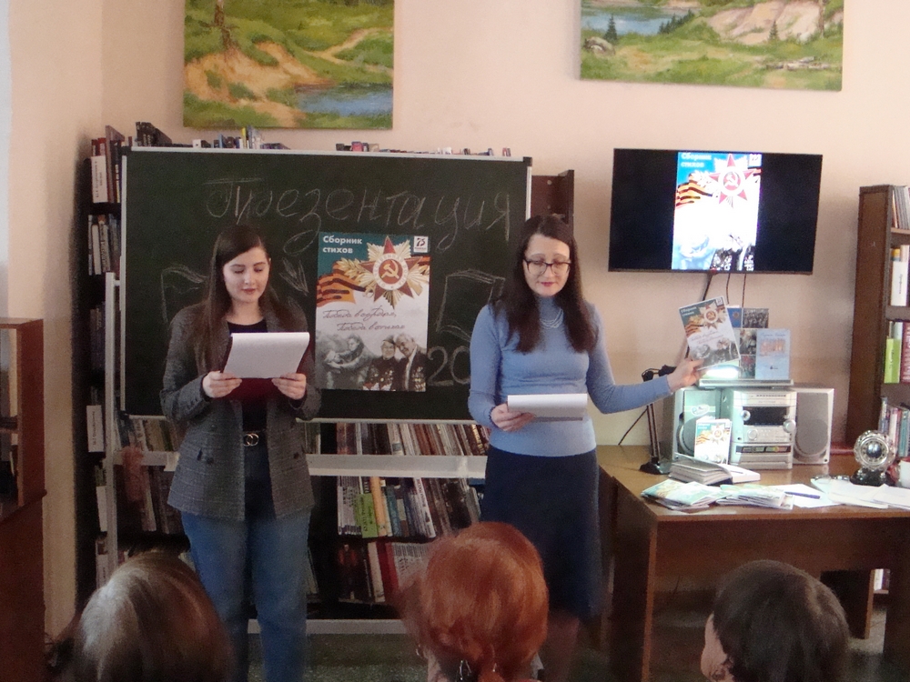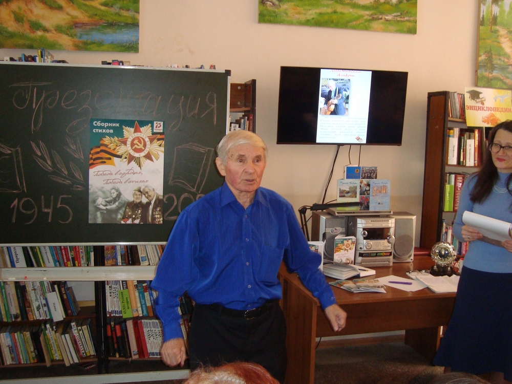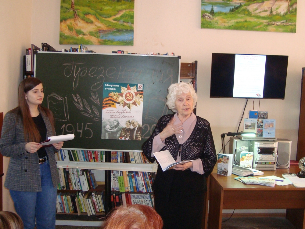 29 января 2020 года в Библиотеке им. Г. Е. Юрова (пр-т Шахтеров, 37Б) состоялась презентация сборника стихов «Победа в сердцах, победа в стихах», авторами которого стали читатели Библиотеки им. Г. Е. Юрова, ветераны Рудничного района и активные участники литературного клуба «Званый гость». Издание сборника стихов читателей библиотеки – это волнительный и уникальный опыт работы, а также важное направление в продвижении чтения литературы, посвящённой военной теме и подвигу народа, отстоявшего право на мир. Началась презентация поэтическими строками Александра Твардовского «Прошла война…». Великая Отечественная война 1941–1945 гг. – самое страшное событие XX века, событие, которое перевернуло судьбы миллионов людей. Война стала великой трагедией для советского народа, и в то же время подъемом человеческого духа, патриотизма, величайшего исторического прозрения воевавших поколений людей. Это была война за свободу, за человеческое достоинство. В этом году исполняется 75 лет со дня Победы советского народа в этой страшной войне. Всё дальше и дальше уходят исторические события войны, все труднее понять глубину трагедии отдельной семьи и всего народа. В каждой семье есть свои герои, фронтовики и труженики тыла, узники концлагерей и блокадники, вдовы погибших участников войны. Ведущие во вступительной части презентации рассказали о том, как шла работа по изданию сборника. Всех авторов сборника стихов очень волнует тема прошедшей далекой войны, тогда они были юными, а многие родились в послевоенное время, но сохранили воспоминания своих отцов и родственников, прошедших войну. Они проявили активность и интерес, когда на одном из заседаний литературного клуба появилась инициатива издать их стихи, посвящённые своим родным и близким, отстоявшим Родину от фашистских захватчиков и испытавших все тяготы военных лет. Авторы приносили свои рукописные стихи. У одних авторов они профессиональные, у других – совсем любительские, но все они очень искренни и самобытны, и это жизненные истории и воспоминания об отцах, братьях, о поколении советских людей, ветеранах войны и труда, переживших военные годы. Каждое стихотворение проникновенно, авторы проявили свое творчество, свою авторскую индивидуальность. Собранные стихи в сборнике создают очень позитивное и гармоничное впечатление, они пропитаны душевным теплом, стремлением глубже понять уроки прошлого. В ходе встречи ее участникам была представлена структура сборника, ее разделы и оформление. Привлекательно выглядит и оформление сборника стихов – яркая, красочная обложка, цветные фотографии, четкий и понятный шрифт, прекрасное расположение поэтических текстов, креативная верстка. Фотографии из личных архивов авторов стали дополнением к содержанию стихов и украшением страниц сборника. Авторы стихов – очень общительные люди, поэтому все они стали участниками презентации. Они поделились своими воспоминаниями, размышлениями о войне и о чувствах, которые она затрагивает. Особое эмоционально впечатление вызывало чтение авторами своих любимых стихов. В конце встречи авторы сборника выразили общую мысль, что издание сборника необходимо, особенно молодому поколению, для того, чтобы будущие поколения знали и помнили свою историю.