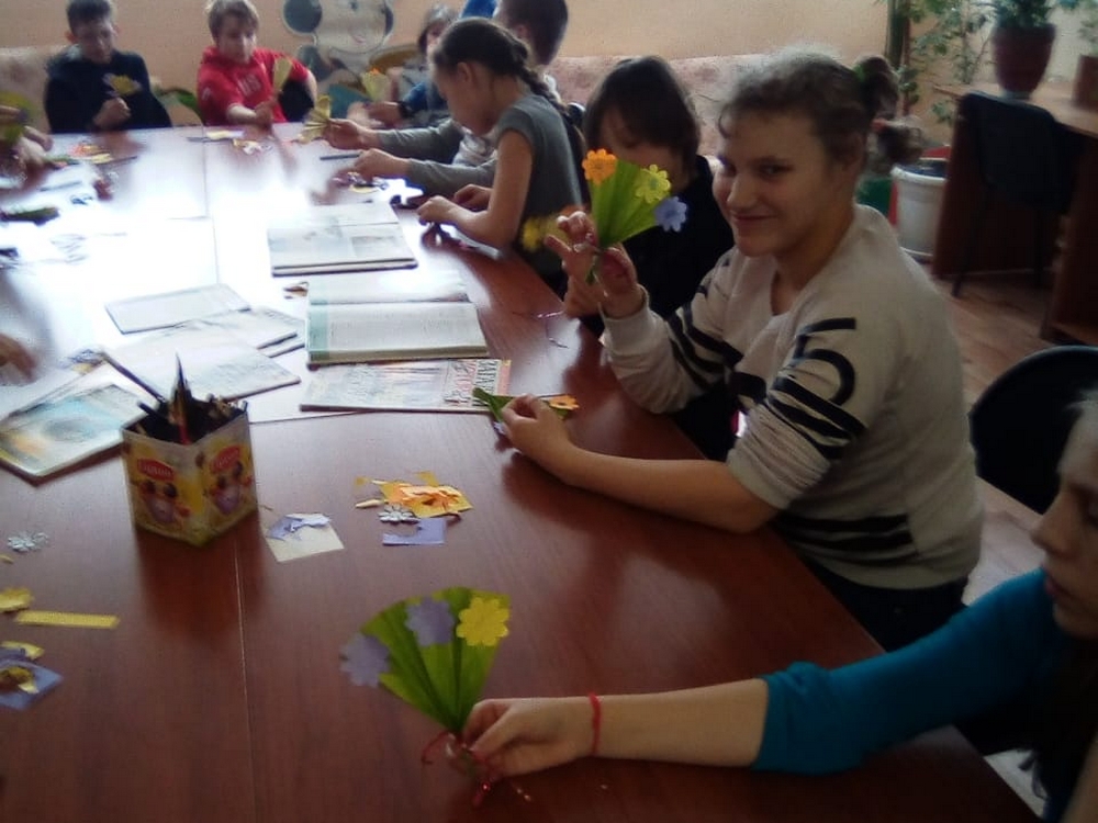6 марта 2020 года в преддверии Международного женского дня в Библиотеке им. И. М. Киселева (ул. В. Волошиной, 29) прошел мастер-класс «Подарок для любимой мамы». Библиотекарь рассказала ребятам об истории праздника. Дети приняли участие в играх и конкурсах: собрали пословицы о маме, отгадали загадки о маминых помощниках, ответили на вопросы конкурсов «Самая догадливая» и «Самая находчивая». День 8 марта – добрый и нежный праздник. В этот день очень хочется удивить и порадовать интересным подарком свою маму. А, как известно, лучший подарок – это подарок, сделанный своими руками! С интересом и воодушевлением дети приступили к изготовлению подарка для мам – букета цветов. Аккуратно и бережно дети складывали букет, который украсили вырезанными из цветной бумаги цветами, украсив праздничной ленточкой. Ребята не забыли поблагодарить библиотекаря за необыкновенный мастер-класс и сфотографировались на память.