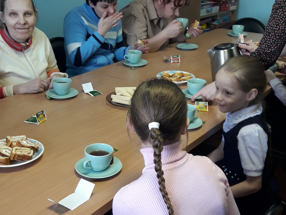 И конечно, в такой замечательный праздник никак не обойтись без подарков, подопечные Кедровского психоневрологического интерната сделали для всех подарок – вязаные вещи, изготовленные своими руками. Это было трогательно и приятно. Праздник завершился чаепитием!