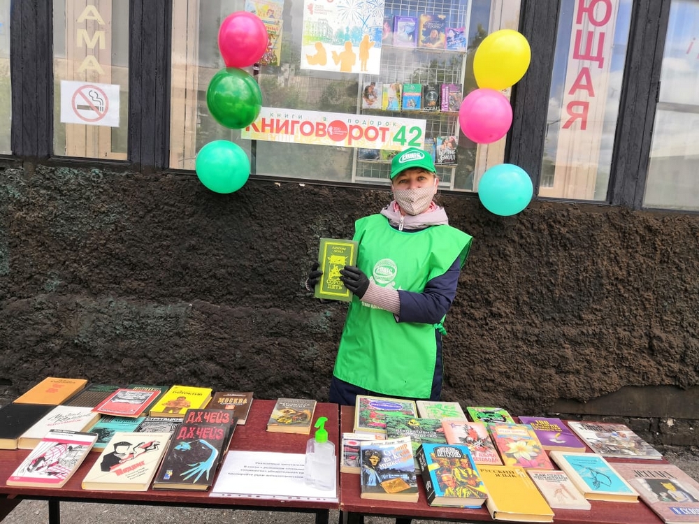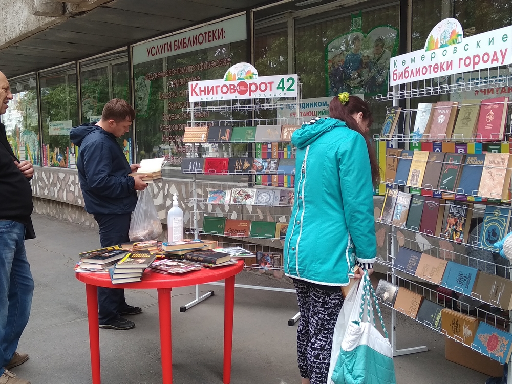 Также в течение дня в ряде библиотек (им. Н. В. Гоголя, им. А. М. Береснева, им. В. М. Мазаева, им. И. М. Киселева, им. Г. Е. Юрова, «Книжная радуга», «Читай-город», «на Весенней»), расположенные во всех районах города, состоялась акция «Книговорот42». В рамках акции у входа в библиотеки были празднично оформлены зоны раздачи книг, при посещении которых каждый желающий смог взять книгу себе в подарок. Всего в акции приняли участие более 600 участников, которые забрали с собой более 1700 книг. И, конечно, библиотеки не могли обойти стороной своих «заслуженных» (старше 65 лет) читателей, которым в этот день библиотекари доставляли книги на дом.