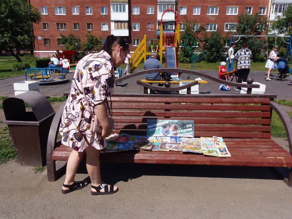 Книжная скамейка привлекла внимание всех от мала до велика! Прогуливающиеся люди в первые же минуты появления книг брали их в руки и начинали листать, некоторые сразу же погружались в чтение, а молодые мамы спрашивали: «А у вас есть еще детская книжка?». Пенсионеры радовались, что есть возможность почитать книгу на прогулке. Всех приятно удивило, что книги распространяются абсолютно бесплатно и их не обязательно возвращать в библиотеку. Книги и журналы сразу разобрали, и скамейка быстро опустела. Взрослые торопились с книгами домой, подростки читали, не спеша, в тенечке.