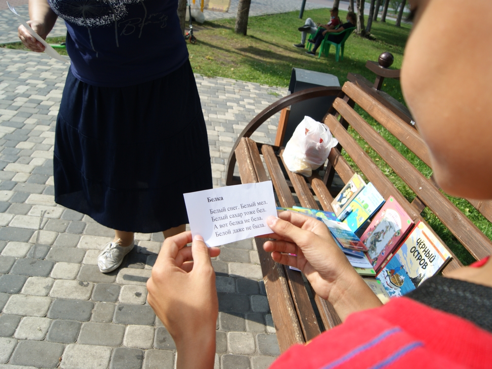 4 августа 2020 года для наших юных читателей сотрудниками библиотеки им. Н. В. Гоголя (пр‑т Ленина, 135) в линейном парке по бульвару Строителей было проведено говорун-шоу «Игра со скороговорками».