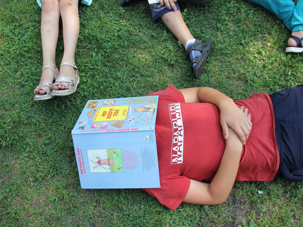 К немалой радости присутствующих можно расположиться на «читающей» скамейке и на траве, и познакомиться с детскими книгами из библиотеки, поучаствовать в литературной игре-викторине «Путешествие по страницам любимых книг». Участники игры побывали в городе Литературных персонажей, городе Авторов, Загадочном городе, городах Поэтов и Волшебников. Под «Заговоренные слова» «Лечу в Волшебную страну» дети вспоминали, «Кто есть кто» в детских книгах, по отрывкам определяли книжных персонажей и многое другое.