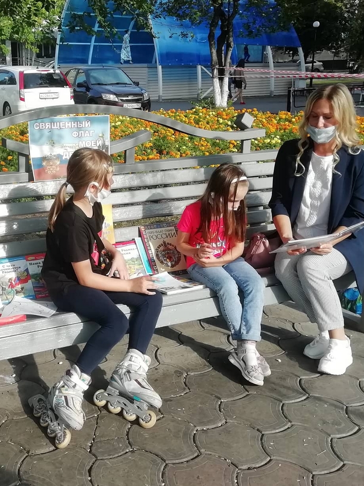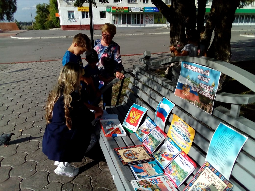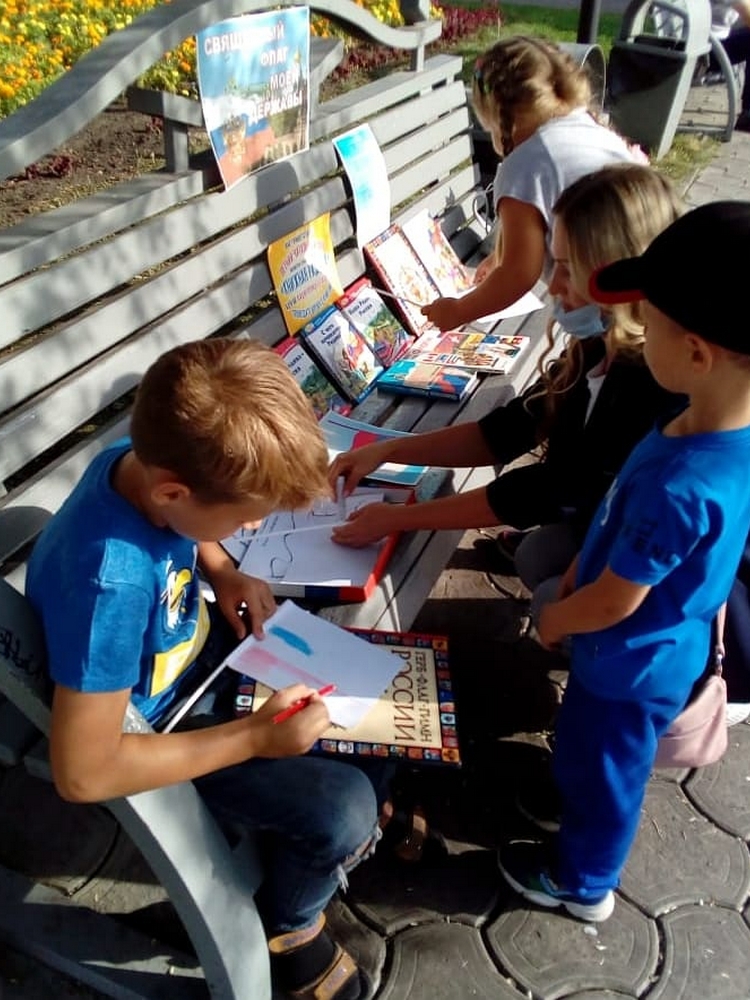 Солнечный пятничный читальный зал библиотеки семейного чтения «Книжная радуга» встречал своих гостей познавательной и патриотической книжной выставкой «Священный флаг моей державы», посвященной замечательной и торжественной дате – Дню Государственного флага России. На выставке были представлены книги об истории России, а также рассказы и стихи о Родине. Ребята смогли узнать, благодаря кому и когда появился первый трехцвет. Библиотекарь поведала о значении каждого цвета и том, что наряду с флагом у России есть еще герб и гимн – главные отличительные знаки, которые являются символами страны. Ребята с большим интересом собирали пазлы с Российской символикой. Все желающие смогли принять участие в мастер-классе и сделать флаг любимой Родины своими руками, и, конечно, отобразить триколор в рисунках на асфальте, осознав себя неотъемлемой частью большой страны.