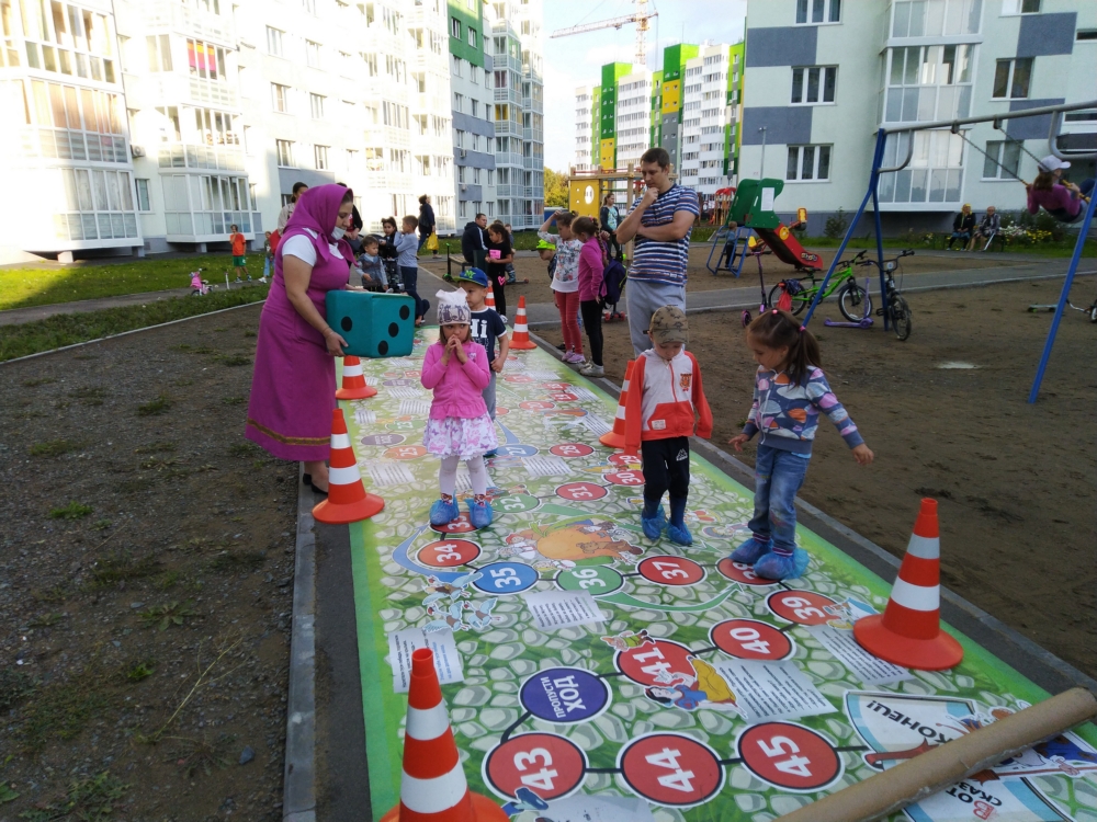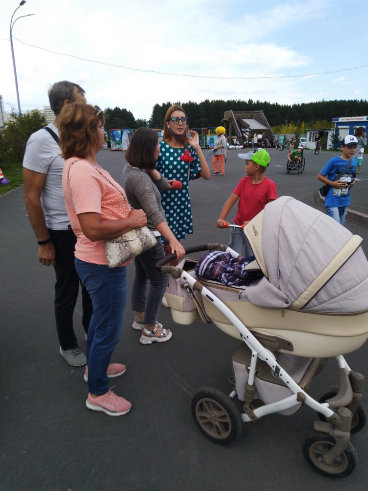 Дважды в неделю, когда позволяли погодные условия, мобильная команда библиотекарей посещала игровые площадки новостроек в разных микрорайонах города. Новоселы Радуги, Южного, ФПК, и др. с удивлением и с радостью встречали команду сказочных персонажей: неунывающего Карлсона, Машу и Медведя, веселого клоуна. Под заводную музыку дети с удовольствием принимали участие в играх и эстафетах, отвечали на литературные загадки, проходили сказочное путешествие и в награду получали забавные фигурки из шаров от нашего клоуна.
