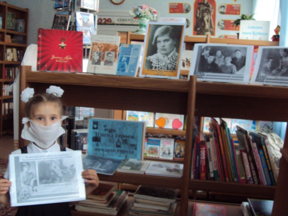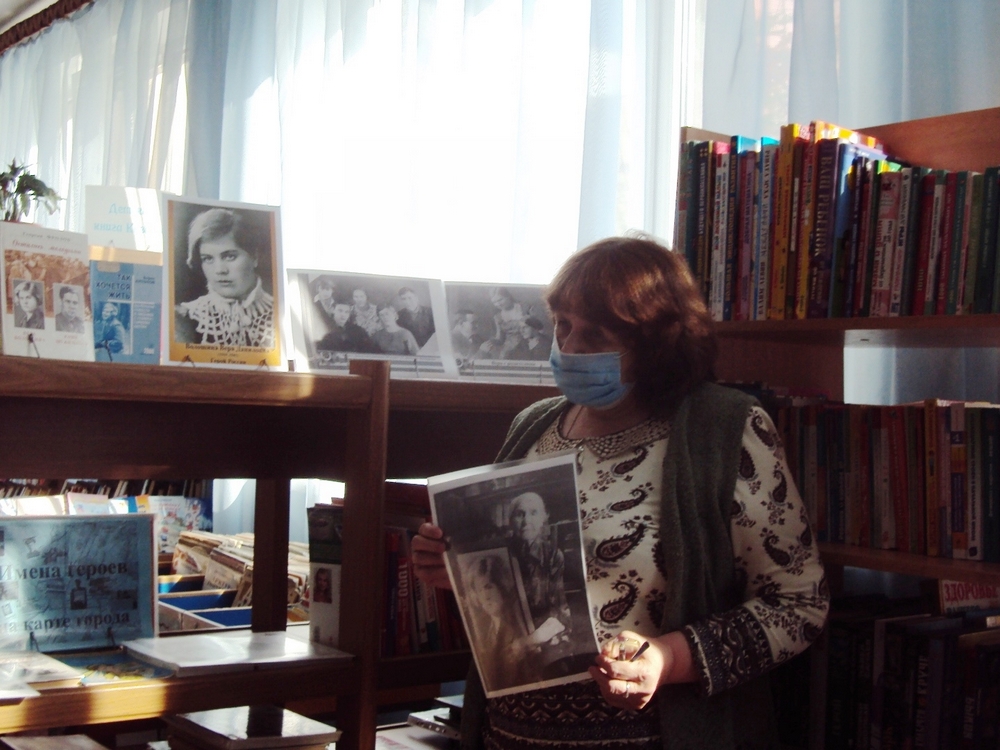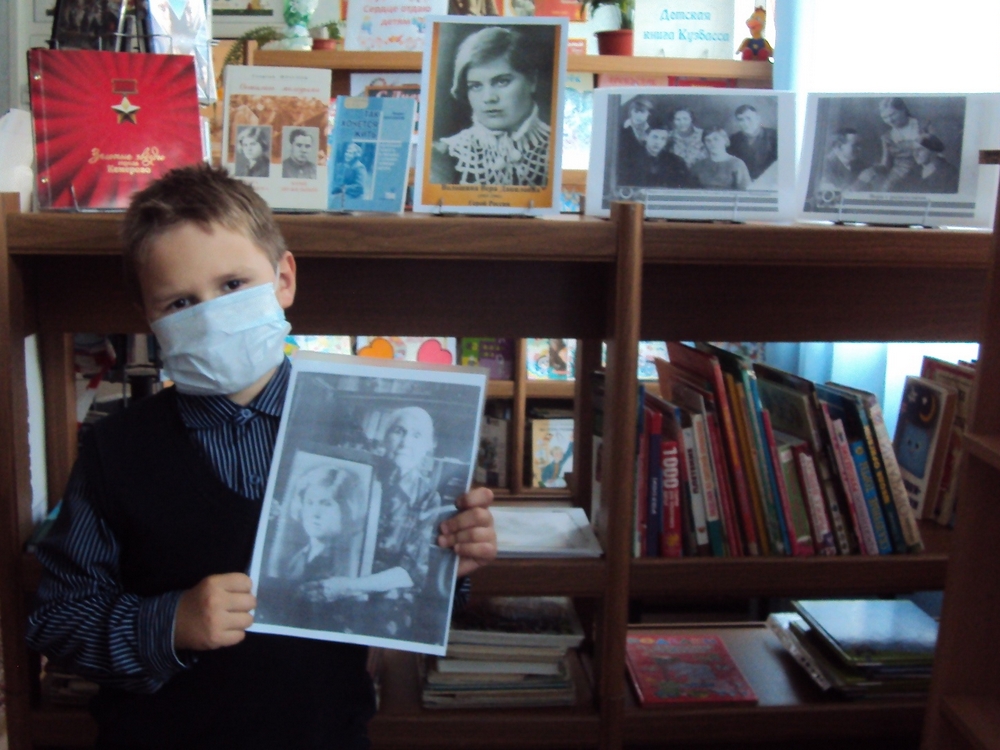 К мероприятию была оформлена книжно-иллюстративная выставка «Имя в истории города», где представлены издания о жизни и подвиге нашей землячки. Юные читатели с большим интересом слушали рассказ библиотекаря о детстве и юности, о героическом подвиге Веры Даниловны Волошиной. Рассказ дополнили строки из её писем с фронта своим родным, которые включены в книгу кемеровского журналиста Б. С. Антонова «Так хочется жить».