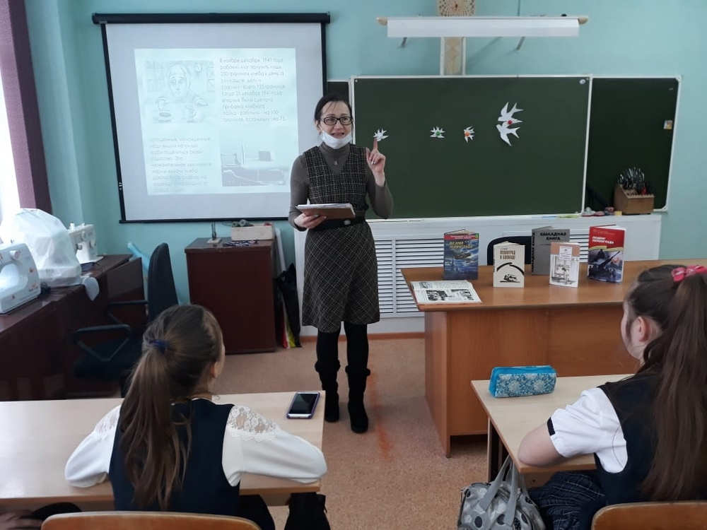 Также библиотекарь провела обзор книг о мужестве ленинградцев: С. Ярова «Жизнь блокадного Ленинграда», В. Ф. Голубев «Во имя Ленинграда», С. Алексеев «Подвиг Ленинграда» Н. Ходза «Дорога жизни» и познакомила со стихами Ольги Берггольц, посвященными героическому Ленинграду.