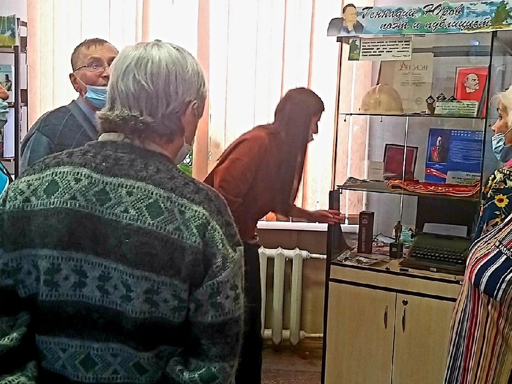 В начале обзора музейной экспозиции сотрудники библиотеки рассказали о жизни и творчестве Геннадия Евлампиевича, выделили основные этапы его творческого пути, раскрыли экологическую тематику его творчества, актуальную для жителей индустриального города Кемерово. Затем читатели задали вопросы о литературной и общественной деятельности поэта, его творческом наследии и наградах.
