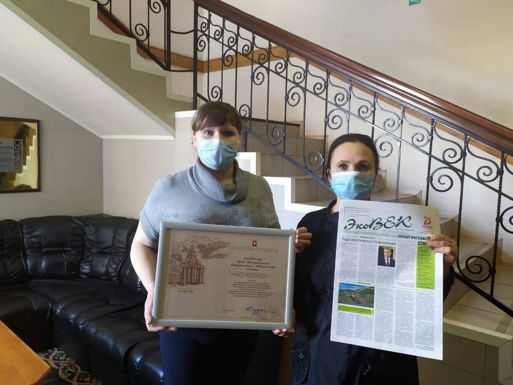 В Кемерове подвели итоги муниципального конкурса на лучшую работу организаций, предприятий, общественности кузбасской столицы по подготовке и проведению Дней защиты от экологической опасности. Главный специалист отдела по охране окружающей среды администрации города Кемерово, финалист Всероссийского конкурса «Доброволец России 2019», Анна Владимировна Бородавко вручила награду победителям. Коллектив МАУК «Муниципальная информационно-библиотечная система» заняли Iместо в номинации «Самое активное учреждение культуры, спорта, молодежной политики, здравоохранения, социального обслуживания населения». Директор МАУК «МИБС» Татьяна Павленко, а также Наталья Шуваева, Татьяны Григорьева, Светлана Белянина, Татьяна Сошенко, Татьяна Докукина, Елена Мурзанаева, Екатерина Бизяева награждены почетной грамотой администрации города Кемерово. Поздравляем победителей!