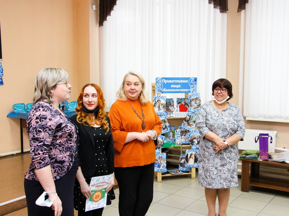В зале, украшенном фотографиями из истории детской библиотеки «Колокольчик», отразились лица читателей и друзей библиотеки. Гости праздника увидели сказочный видеоролик истории библиотеки «Сказ про расцветающие лица «Колокольчика».