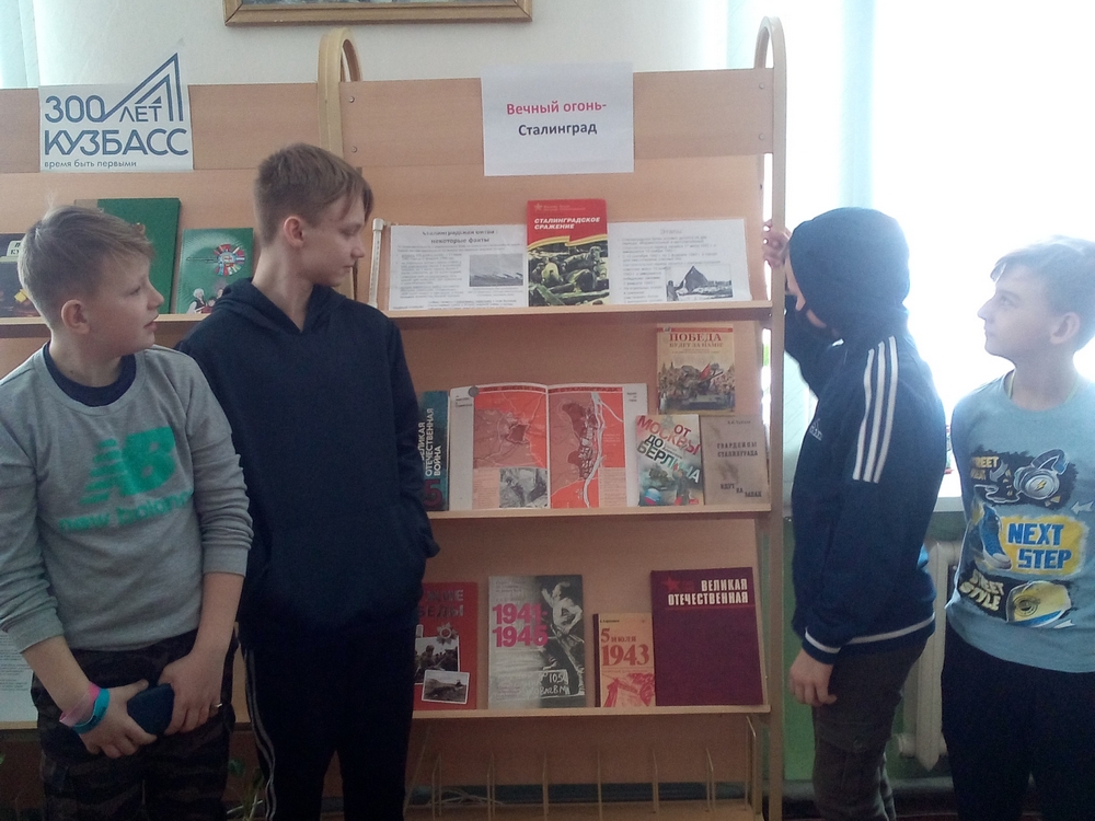 8 февраля 2021 года в 12:00 в библиотеке семейного чтения «Лада» (ул. Промшоссе, 56) ДК «Промышленновский» прошел патриотический час «Вечный огонь – Сталинград». Мероприятие приурочено к месячнику героико‑патриотического воспитания. Ребята узнали о Сталинградской битве, о её значении в ходе Великой Отечественной войны, а также о том, что Сталинград – это город Волгоград, на защиту которого встали не только солдаты Красной армии, но и женщины и дети. Они строили оборонительные сооружения, работали на заводах наравне с мужчинами. Дети прочитали стихотворение Маргариты Агашиной «Горит на земле Волгограда». Также прошла беседа около выставки, посвященной Сталинградскому сражению. На выставке были предложены книги из фондов библиотеки.