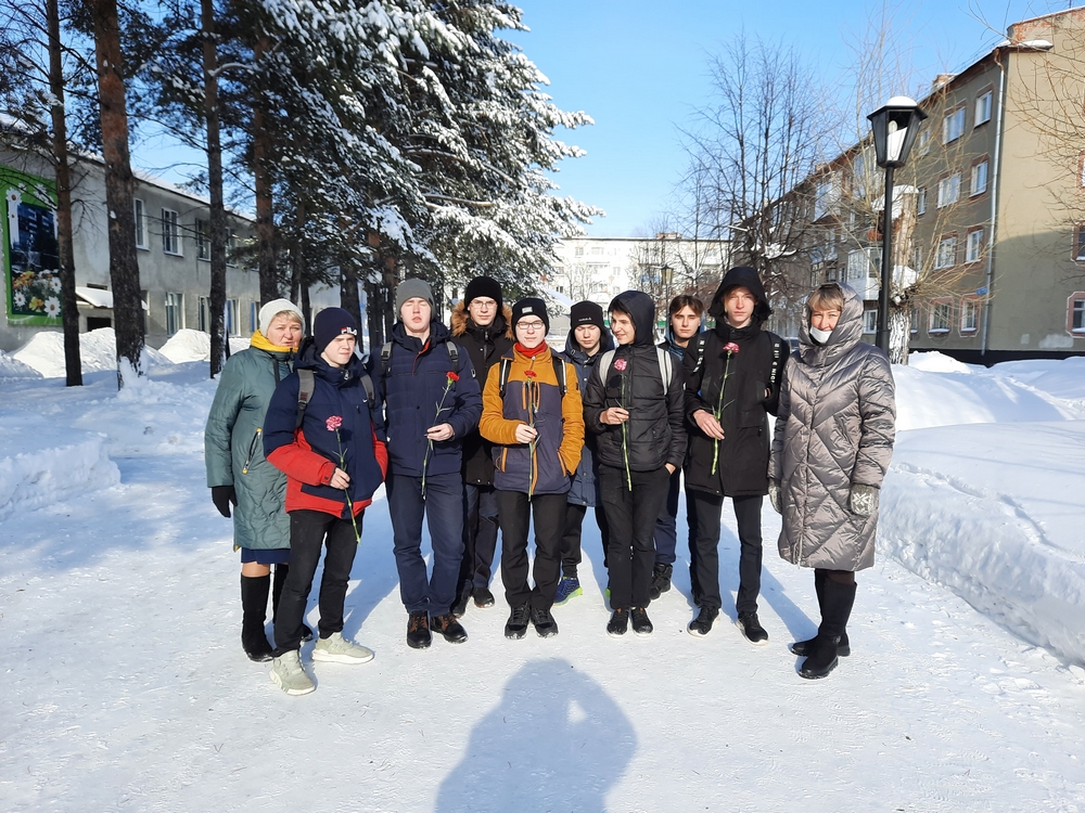 В завершение мероприятия сотрудники библиотеки, преподаватели и учащиеся посетили аллею героев и возложили цветы к памятнику воинам‑землякам и всем воинам, геройски погибшим в горячих точках Афганистана и Чечни.