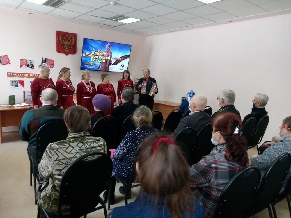 В библиотеке семейного чтения «Книгочей» в ходе литературно-музыкальной композиции «О Чести, Доблести и Славе» читатели поговорили о многовековой истории нашей Родины, овеянной доблестью и славой российских воинов, о священных словах – Долг, Честь, Присяга, которые придают силу и храбрость, вдохновляют на подвиг. В Дне защитника Отечества заложен высокий смысл – любить свою Родину и, в случае необходимости, уметь ее отстоять, поэтому почетными гостями мероприятия стали профессиональные военные и те, кто с честью служил в рядах Вооруженных сил. Посетители мероприятия вспомнили о трагических страницах ВОВ, о родственниках, чьи военные фотографии бережно хранятся в семейном альбоме, а в День Победы вливаются в поток «Бессмертного полка». Сегодня ветеранам Великой Отечественной войны уже немало лет, их становится с каждым годом все меньше и меньше, но память о них хранят потомки. Активист ветеранской организации Григорьева Нина Ивановна рассказала о об Игнатии Ивановиче Григорьеве, который ушел на фронт в сентябре 1941 года, оставив семью с четырьмя детьми. Когда во время бомбежки погиб его командир, он взял командование на себя. Награжден медалями «За отвагу», «За взятие Будапешта», «За взятие Берлина», «За победу над Германией», а орден второй степени ВОВ нашел героя-сапера только в 1982 году. Словно эстафета передается из поколения в поколение героическая слава наших дедов и отцов, отстоявших с оружием в руках независимость Родины. Нынешнее поколение российских воинов, продолжая эстафету самоотверженного служения Родине, по-своему проходит испытания на прочность. С большим интересом участники встречи посмотрели видеорепортаж телеканала «Россия» о тех, для кого слова «долг» и «честь» дороже жизни. Об обычных парнях, которые под пулями не трусили, друзей не предавали. Людмила Павловна Медведева бережно хранит в семейном архиве книгу памяти «Мне сегодня не выйти из боя…», где ей особенно дороги три страницы, на которых поместилась биография ее сына – погибшего в Чечне старшего сержанта ОМОН Медведева Дмитрия Анатольевича, посмертно награжденного орденом Мужества. Служить и защищать морские границы нашей Родины довелось нашему гостю – старшему мичману Тихоокеанского флота Попову Владиславу Сергеевичу. За годы службы на подводной лодке 641 проекта он прошел Тихий и Индийский океаны, одиннадцать морей. Владислав Сергеевич считает, что обращение к героическому прошлому нашей Родины, к памяти, к воинским традициям, к славной истории Вооруженных сил – святой долг каждого гражданина, а армия была и остается этапом становления молодого человека, школой мужества и героизма.