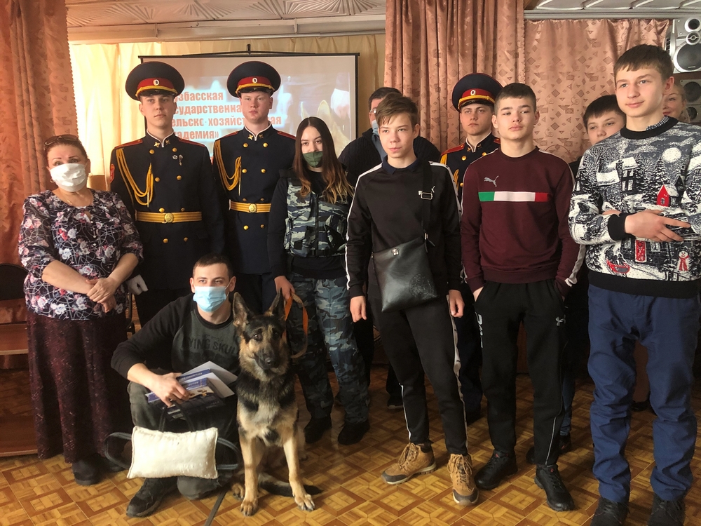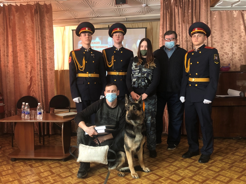25 февраля 2021 года в Детской библиотеке им. А. М. Береснева (б‑р Строителей, 7) в рамках месячника оборонно-массовой работы состоялся Ежегодный библиотечный прием кадет «Честь имею!», посвященный Дню защитника Отечества. На встречу традиционно были приглашены кадеты ГБ НОУ «Губернаторская кадетская школа‑интернат полиции». Зрителями приёма стали учащиеся МБОУ «СОШ № 77» г. Кемерово. Как и в прошлые приёмы, между школьниками и кадетами состоялся оживлённый диалог об отличии учёбы в общеобразовательной и кадетской школах. Ребятам было интересно всё: от дополнительных дисциплин, изучаемых кадетами, до рациона питания. Не обошлось без повторяющихся из года в год вопросах о доступности гаджетов и интернета. Школьники были очень удивлены тем, что кадетам абсолютно некогда страдать от ограничений доступа к сети, ведь их день расписан поминутно! Зрители совершили виртуальную экскурсию в стены «Губернаторской кадетская школы-интерната полиции», благодаря видеоролику, предоставленному школой. Заведующая библиотекой школы-интерната Светлана Викторовна Кислицына рассказала требования и нюансы для желающих всерьёз поступить в данное заведение: это хорошая учёба, безупречное поведение и отличная физическая подготовка. По традиции кадеты выступили с творческим подарком – видеороликом выпускника кадетской школы Ахметзянова Алексея с песней «Ты моя мелодия». Профориентационный блок мероприятия дополнили гости из Кузбасской государственной сельскохозяйственной академии – старший преподаватель кафедры селекции и генетики Игорь Николаевич Морозов и студенты 4 курса зоотехнического факультета (направление «Кинология») Анна Жидкова и Андрей Иванов. Гости не просто интересно рассказали о специальности кинолога, но и продемонстрировали зрителям результаты обучения. А помог им в этом ещё один гость, ставший настоящим «гвоздём программы», – восточно-европейская овчарка Андромеда, вместе со студентами показавшая зрителям различные трюки. Многие из присутствующих заинтересовались профессией кинолога. 2021 год объявлен Годом науки и технологий в России. Квиз «Наука России – миру», посвящённый научным достижениям и изобретениям российских учёных, стал объединяющим моментом для кадет и школьников. На вопросы из различных областей знаний и те, и другие отвечали с азартом и примерно равными силами. Традиционно на Ежегодном библиотечном приеме кадет был дан старт библиотечной акции «Читаем книги о войне», основная цель которой – привлечение внимания кемеровчан к чтению военно-патриотической литературы из фонда муниципальных библиотек. В честь старта акции была проведена «Викторина-бук-шоу», посвящённая героям и событиям Великой Отечественной войны. Победителем викторины стал кадет Глеб Николаев, получивший в подарок «Большую историческую энциклопедию». Приём завершился традиционной фотосессией и экскурсией по отделам библиотеки, где гости познакомились со свежими экспозициями и книжными новинками.