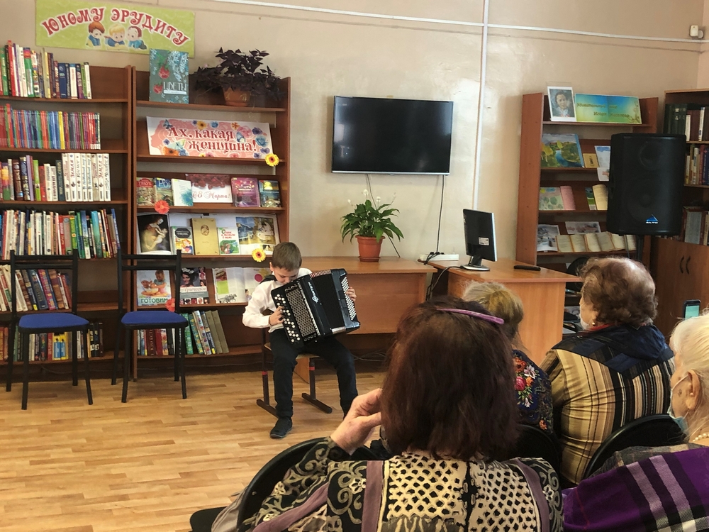 10 марта читательницы библиотеки им. И. М. Киселева (ул. В. Волошиной, 29) совершили литературную прогулку «Я верю, что все женщины прекрасны…». 8 марта – самый удивительный, очень особенный праздник, он согрет лучами солнца, украшен россыпью цветов и нежностью. Во время мероприятия гости познакомились с историей праздника, приняли участие в шуточной викторине. В честь прекрасных дам звучали стихи советских и русских поэтов в исполнении студентов техникумов. А трогательные музыкальные композиции о маме, о любви, о весне в исполнении учащихся Детской музыкальной школы №14 растрогали и удивили гостей мероприятия. Эмоциональные выступления юных музыкантов и певцов не оставили никого равнодушным. Читательниц поздравили студенты из «Сибирского колледжа сервиса и технологий и председатели Совета ветеранов по месту жительства. Для читателей был проведен обзор книжной выставки «Ах, какая женщина!», на которой были представлены поэтические сборники, книги русских и зарубежных писателей, где главной героиней является «Её величество Женщина».