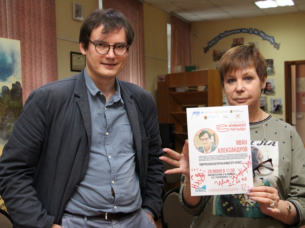 С 25 по 27 июня в Кемеровских библиотеках проходили встречи с известными писателями и художниками-иллюстраторами в рамках фестиваля «Книжная площадь», который стал одним из центральных культурных событий празднования 300-летия Кузбасса. 10 известных персон российской литературы за два дня посетили городские библиотеки и провели для гостей чтение своего творчества, мастер-классы и познавательные лекции. В Детской библиотеке им. А. М. Береснева творческие встречи провели писательница Александра Литвина и художник-иллюстратор Евгений Антоненков. Александра Литвина – автор исторических игровых книг для детей: «История старой квартиры», «Транссиб», «Мы идем в музей», «Метро на земле и под землей: краткая история железной дороги в картинках». На встрече с ребятами она рассказала не только о том, как пишет свои книги, но и показала свою коллекцию раритетных вещей из Российской империи и Советского союза. Елочные игрушки, щипцы для завивки, коробочки из-под леденцов, игрушечный приму – все это читатель видит на страницах ее произведений. Сама писательница объяснила слушателям важность этих вещей тем, что каждая из них порой несет в себе историю целого поколения. Постоянный участник престижных международных Биеннале, номинант международной премии Астрид Линдгрен Евгений Антоненков рассказал гостям библиотеки о своем творческом опыте и о том, как он создает красочное оформление художественного текста. Для всех желающих иллюстратор провел мастер-класс, где каждый, независимо от своих способностей, смог сделать картинку по детской книге. В Библиотеке им. Г. Е. Юрова автор книг «Фото на развалинах», «Боишься ли ты темноты?», «Просто жить!», «Город без войны», «Точка бифуркации», «Сказки страны Чумр», «290 лет назад и далее» Николай Пономарев коротко рассказал о своих произведениях и дал краткую характеристику персонажей, чем заинтересовал юную аудиторию. Затем прочитал отрывок из повести писателя «Просто жить». В Центре культурно-познавательного досуга семьи «Берегиня» писательница из республики Беларусь Анна Зенькова не только рассказала, как пишет свои книги, но и раскрыла гостям секрет, почему темой ее творчества стали проблемы сиротства и подростков. В конце библиотека получила подарок от автора – ее новую книгу «Удар скорпиона» с автографом. Писательница из Казахстана Аделия Амраева прочитала в библиотеке «Гармония» свои рассказы, которые затрагивают проблемы, понятные подросткам независимо от их страны проживания, такие как потеря друзей и себя, взаимоотношения с людьми разных культур и национальностей. В конце библиотекари получили в дар от автора ее книги «Футбольное поле» и «Я хочу жить!». В Библиотеке им. И. М. Киселева состоялась встреча с писателем, публицистом, главным героем «Денискиных рассказов» – Денисом Драгунским. Автор не только поделился с читателями секретами своего творчества, но и рассказал о своей общественной деятельности в 1990-ые и 2000-ые годы. Кроме этого, гости узнали различные истории из жизни семьи Драгунских и подробности написания некоторых похождений Дениски Кораблева. Также Денис Драгунский прочитал несколько своих коротких рассказов о взаимоотношениях между людьми в современном мире. Послушать о художественных инсталляциях, необычном творческом стиле и книжном дизайне можно было в Библ