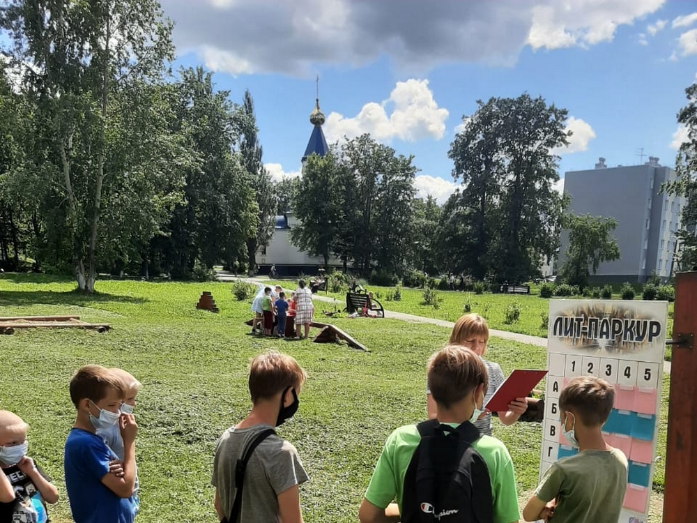 На библиотечной площадке «Остров книжных сокровищ» семейные команды соревновались, отвечая на вопросы литературной викторины: ребята показали отличные знания былин, басен, рассказов и сказок, ведь многие книжки они уже прочли. Были и трудные вопросы, ответы на которые знали мамы и, конечно, бабушки. Именно они посоветовали ребятам прийти в библиотеку и прочесть книжки, из которых они узнают, что: Садко играл на гуслях, а ансамбль из Мартышки, Осла, Козла и Мишки называется квартет, что зайцев спасал дед Мазай, а блоху подковал Левша. Это были самые трудные вопросы нашей литературной викторины. Молодые люди, которые не смогли ответить на вопросы, были вынуждены отжиматься.
