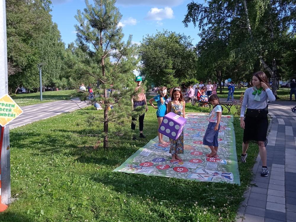 156! Именно столько маленьких ножек «истоптало» напольную игру-бродилку «В гостях у сказки» на площадке «Играем всей семьей!». Старательно кидали огромный кубик, «шагали» по номерам и старались прийти первыми юные кемеровчане под бодрящие возгласы родителей. Массовые заплывы устаивали малыши в «сухом» бассейне.