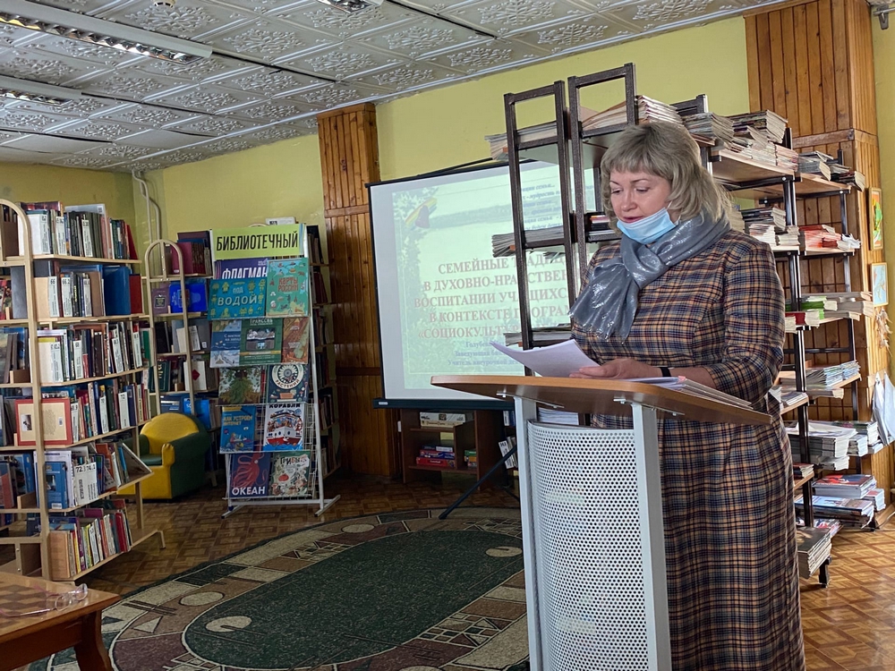 О важности духовно-нравственных ценностей культуры, семейных традиций для детей с нарушениями развития рассказала заведующий библиотекой общеобразовательной школы психолого-педагогической поддержки № 104 Н. Н. Голубева.