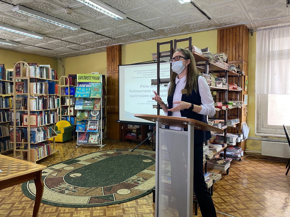 Психолог МАУК «МИБС» Казакова В. П. поделилась с участниками семинара рядом приемов и упражнений, которые помогут внести свой вклад в процесс адаптации детей, решая проблему дефицита общения через организацию досуга и приобщая детей к мировым художественным ценностям.