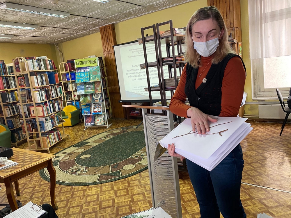 Большой интерес участников семинара вызвал опыт работы Областной специальной библиотеки для незрячих и слабовидящих. В своем выступлении ведущий библиотекарь О. Е. Дятлова подчеркнула важность включения детей с нарушениями здоровья в совместные библиотечные мероприятия со здоровыми детьми.
