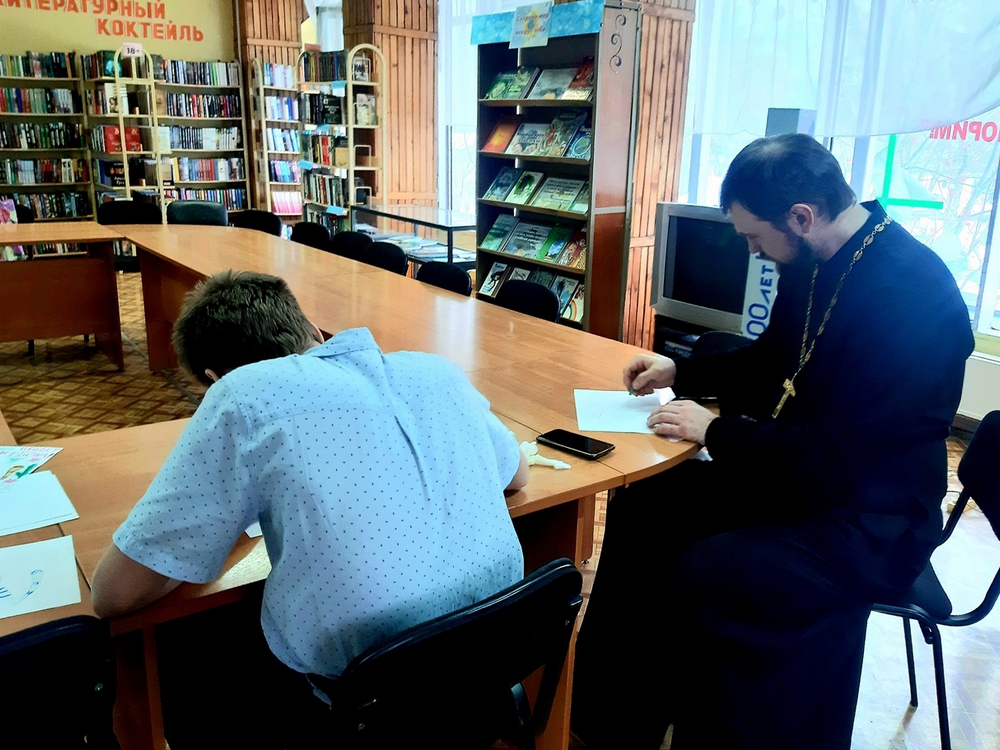 25 февраля в Детской библиотеке им. А. М. Береснева (б-р Строителей, 7) состоялась удивительная встреча учеников общеобразовательной школы психолого-педагогической поддержки № 104 со священником-живописцем Дмитрием Петраковым.