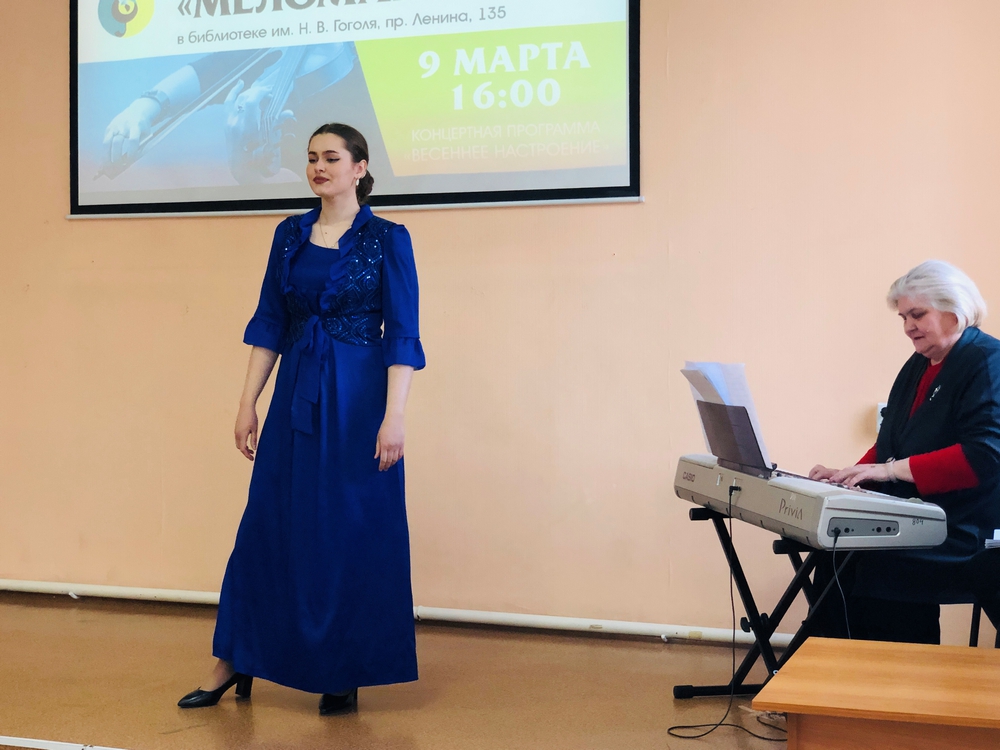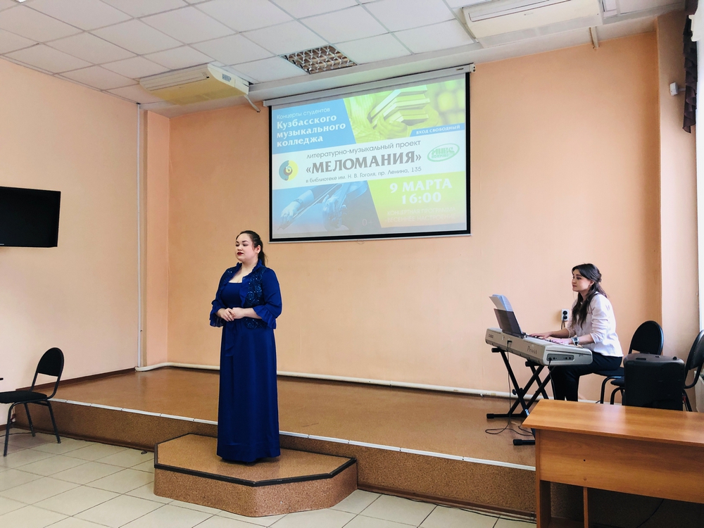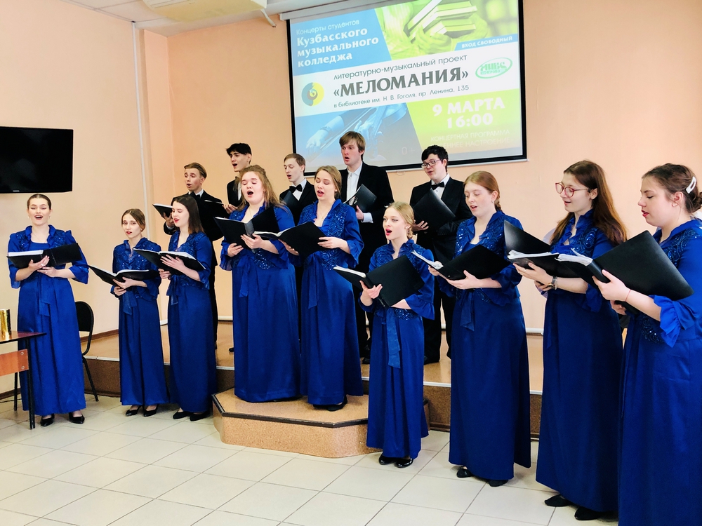 9 марта стартовал новый сезон литературно-музыкального проекта «Меломания»! На сцене Библиотеки им. Н. В. Гоголя прозвучал первый в этом году концерт студентов Кузбасского музыкального колледжа. Гости мероприятия послушали русские и зарубежные произведения в сольном и хоровом исполнении.