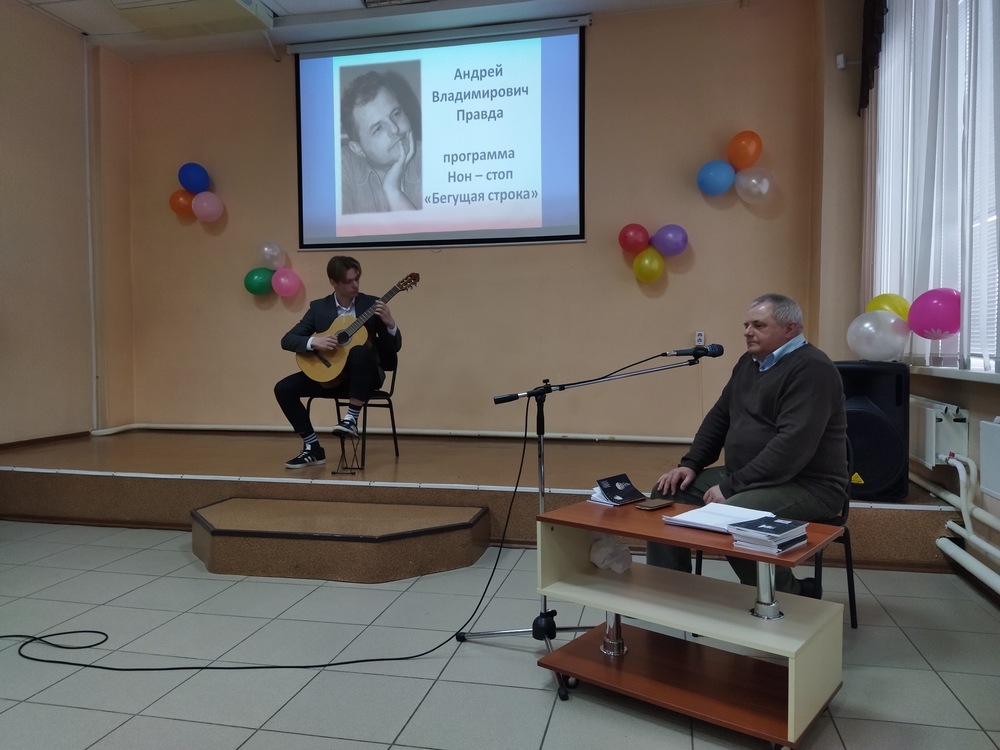 Гости встречи познакомились с биографией писателя, задавали ему вопросы о его творчестве и жизни. Получили огромное удовольствие от авторского прочтения стихов из цикла «Бегущая строка». В адрес Андрея Владимировича звучали тёплые слова поздравлений и искренние пожелания. Приятным подарком для юбиляра и гостей было выступление учеников Детской школы искусств № 19. Ребята подготовили музыкальные и хореографические номера.