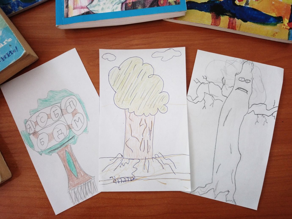 Завершал мероприятие рисуночный тест «Волшебное дерево». Читатели с удовольствием рисовали, выбирая цвета карандашей и общаясь друг с другом. Каждый ребёнок сам решал, какое дерево он будет рисовать (хвойное или лиственное), какое время года будет отражено в рисунке, какие детали (цветы, плоды, листья).