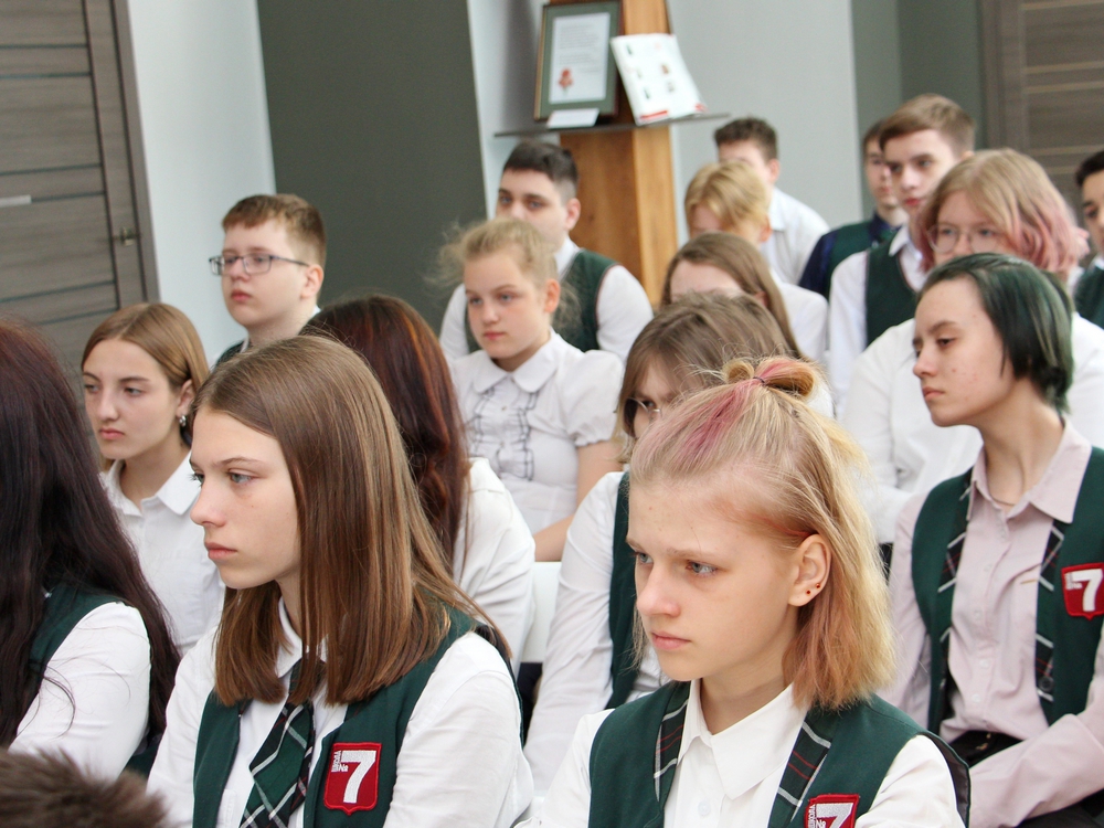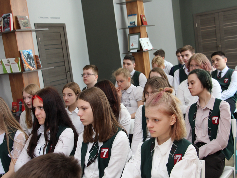 11 мая в 12:00 в Библиотеке городских историй (ул. Весенняя, 7) для учеников 7 «Б» класса школы № 7 прошел Урок Родины «Кузбасс – фронту».