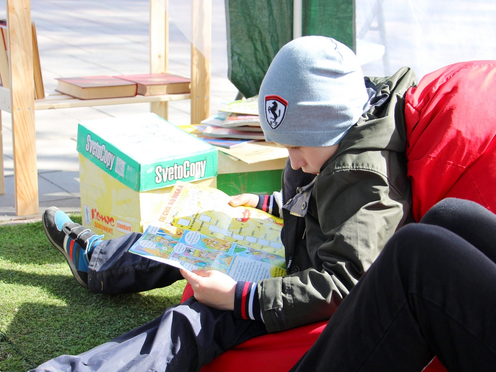 9 мая сотрудники кемеровских городских библиотек организовали для гостей «Книжный привал», где разместились читальный зал в светлом шатре с мягкими креслами, книжная выставка «Великая победа Великого народа» и книжный развал «Хорошие книги в добрые руки».