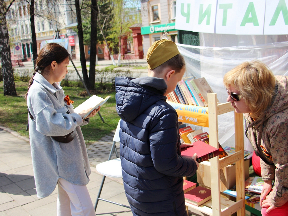Кемеровчане с удовольствием выбирали себе на память книги о войне с книжного развала, историческую и классическую литературу, а маленькие читатели получили в дар детские книги и журналы.