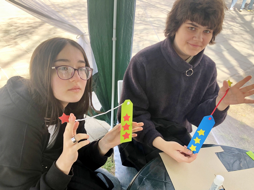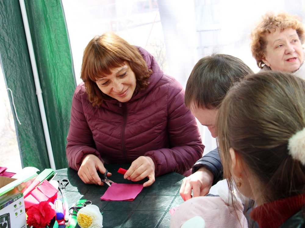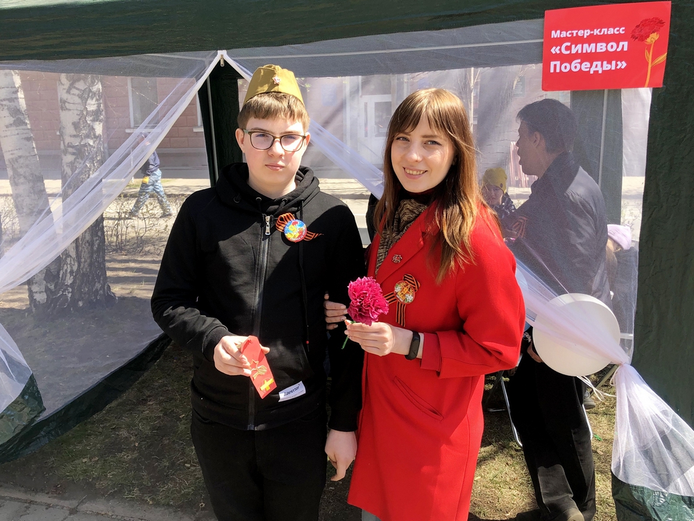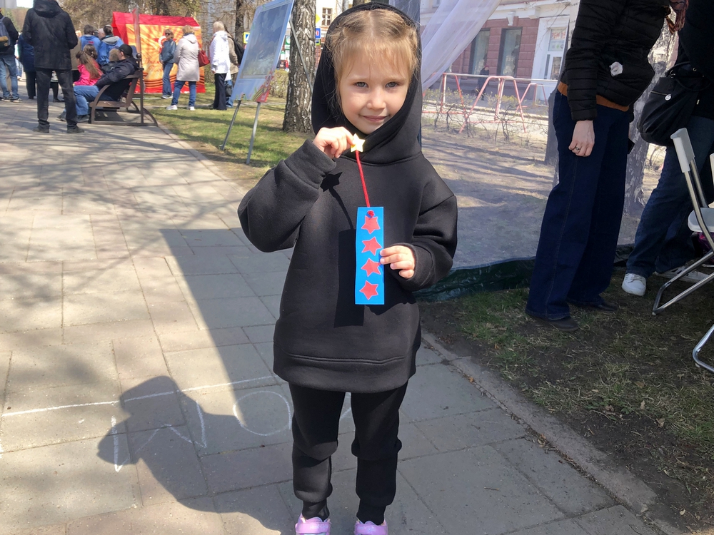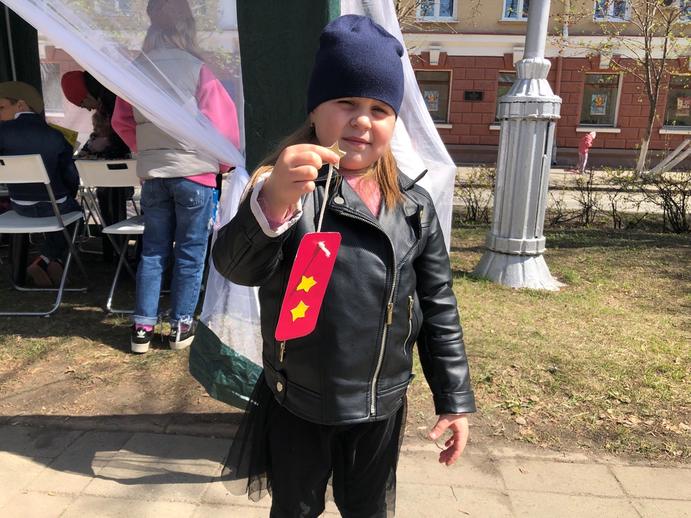 Совсем рядом расположилась другая не менее интересная площадка: сотрудники библиотек организовали для гостей праздника мастер-класс «Символ Победы».