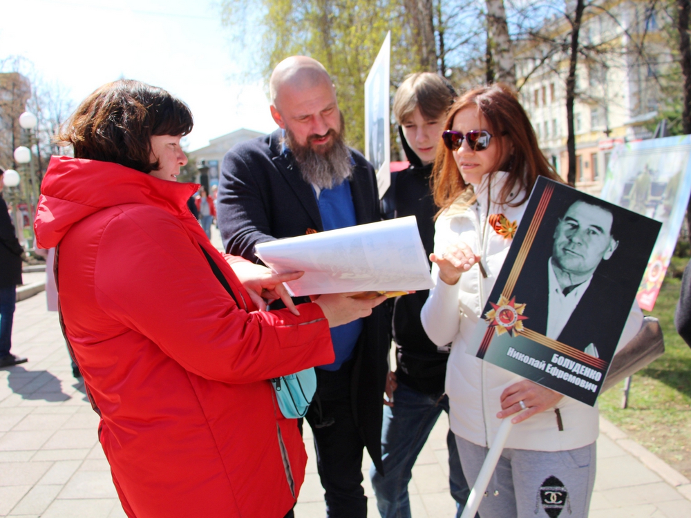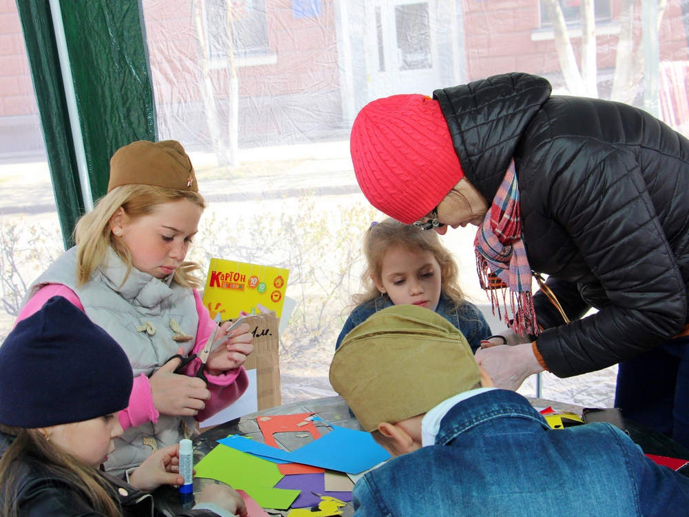 Специалисты библиотек предлагали всем желающим проверить свои знания, ответив на вопросы викторины «Ожили в памяти мгновения войны». Всего шесть простых вопросов нередко вызывали затруднения у молодого поколения, но легко разрешались с помощью пап, мам, бабушек и дедушек, которые сразу находили портрет Веры Волошиной, называли монументы, посвященные Великой Отечественной войне, верно указывали на здание ЦУМа, куда во время войны был эвакуирован оборонный завод.